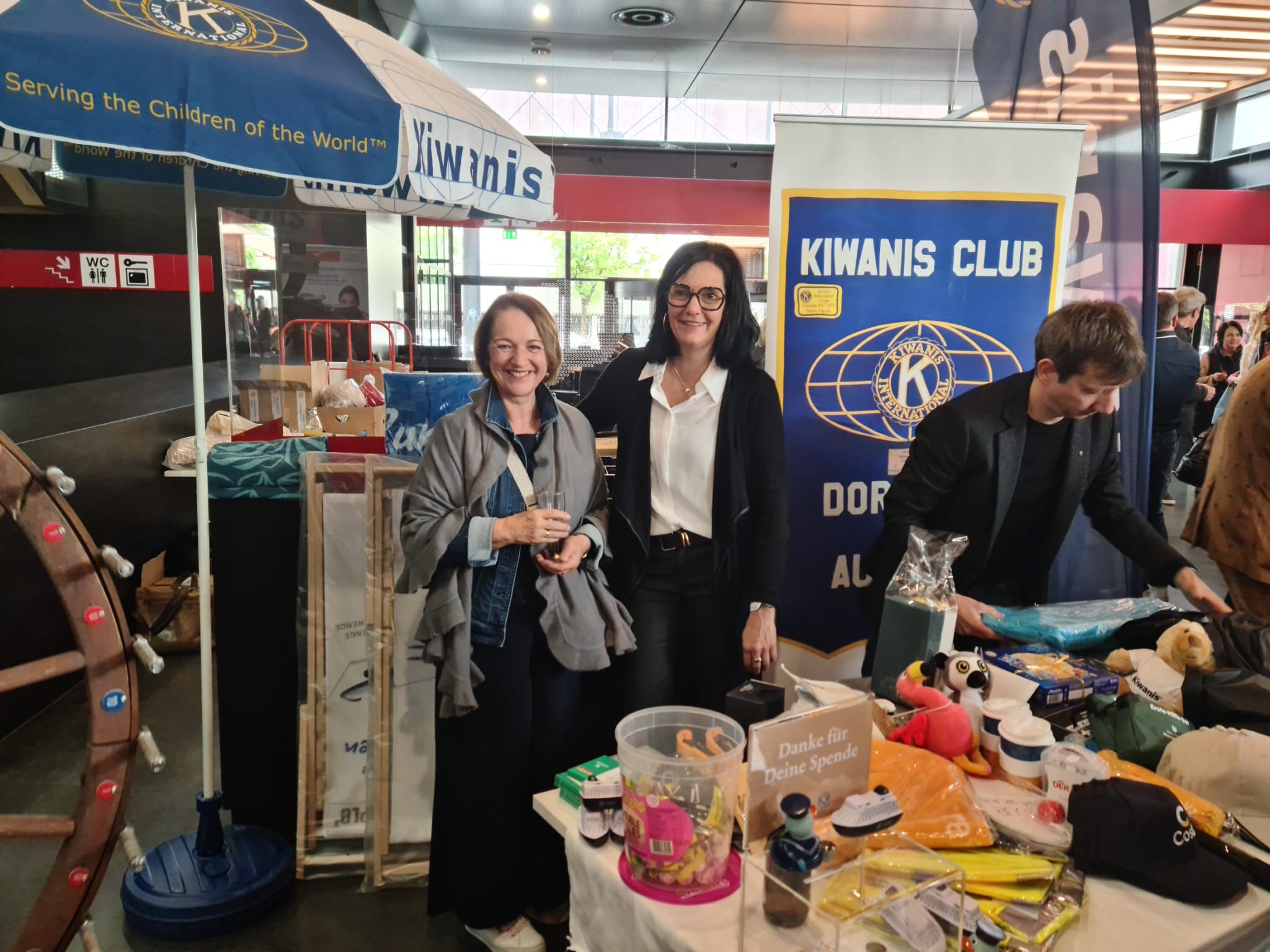 Unser Kiwanisfreund Klaus hat den KCD eingeladen, im Eingangsbereich zur Messehalle, wo die 70-Jahr-Feier statt fand, einen Stand mit unserem Glücksrad aufzubauen.