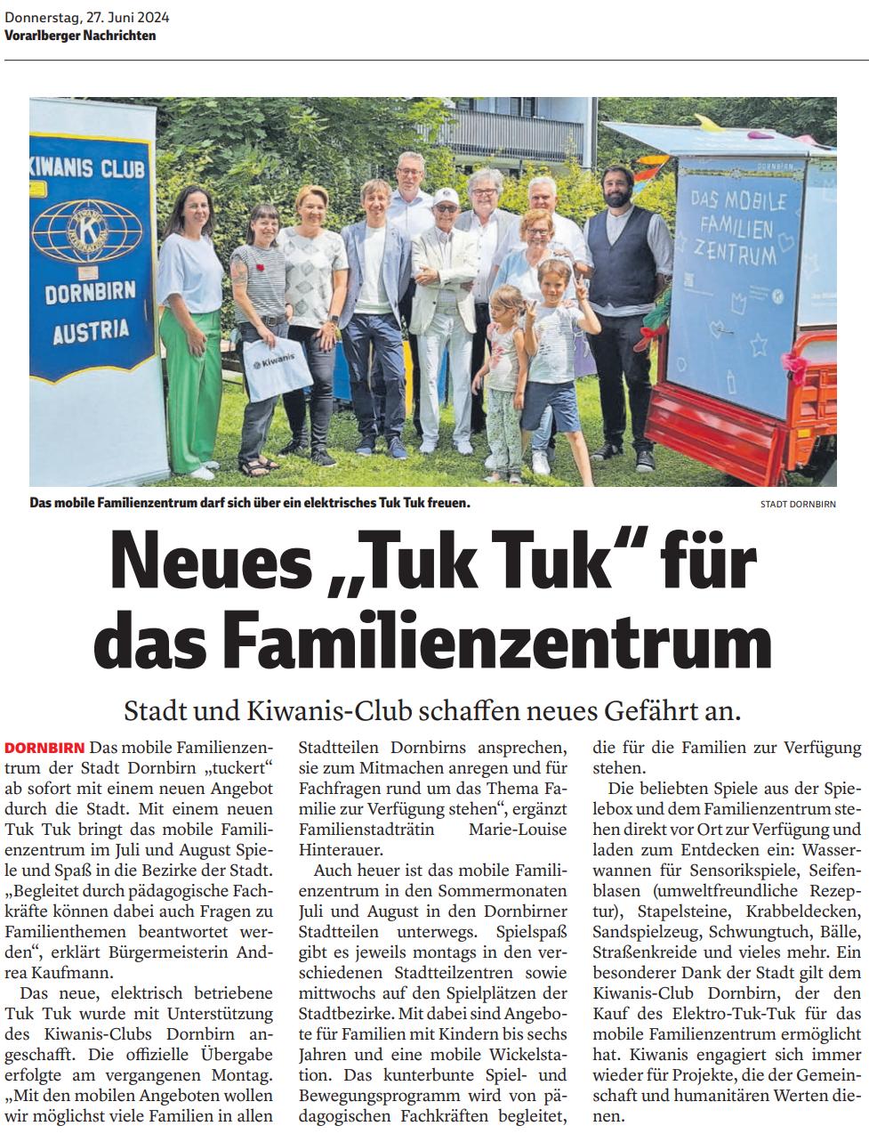 KCD sponsert neues TukTuk für Familienzentrum Dornbirn  28.06.24 - Autor Walter Wintersteiger