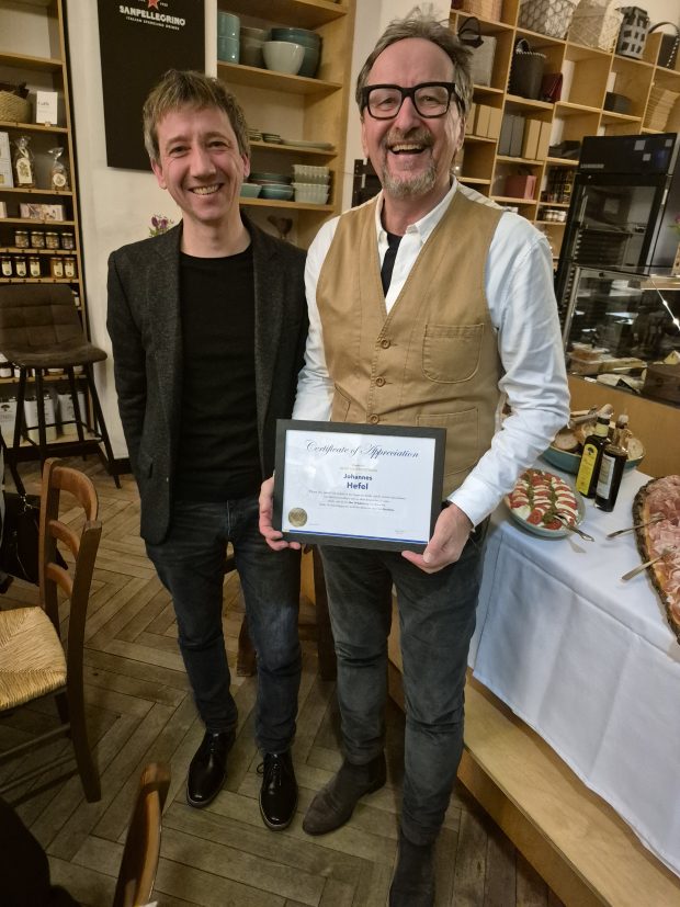 „Lieber Jürgen, im Namen des Kiwanisclubs Dornbirn möchte ich dir unseren herzlichen Dank aussprechen. Deine großzügige Unterstützung durch die Bäckerei Hammerl hat es uns ermöglicht, über viele Jahre hinweg Faschingskrapfen an zahlreiche Firmen und Privatpersonen in Vorarlberg zu liefern. Diese wertvolle Tradition wäre ohne deine Hilfe nicht möglich gewesen.