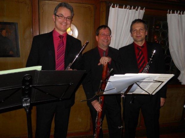 Nach einem ausgedehnten Apero hat uns das Ensemble „Westwind“ (Foto) mit leichter, klassischer Musik unterhalten. Die drei Holzbläser (Klarinette, Fagott und Querflöte) haben sich sehr angenehm und stimmig in das feine Ambiente eingefügt.