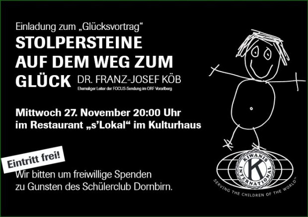 Unter Bezugnahme auf unseren derzeitigen Charityschwerpunkt konnte Wernfried Amann einen (ersten) Scheck über EURO 700 an die Initianten des Schüler Club Dornbirn, Heinz Starchl und Bernadette Kegele, übergeben und alle Mitglieder des Kiwanisclubs einladen, mit persönlichem Einsatz an der Lernbetreuung von Schülern in Dornbirn mitzuwirken und so unser Motto „SERVING THE CHILDREN OF THE WORLD“ zum Leben erwecken.